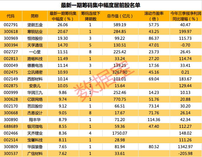 证券时报•数据宝统计,剔除今年下半年以来上市的新股,相比上期(11月30日),股东户数下降的股票有158只,坚朗五金、寒锐钴业、恒帅股份等10股的股东户数降幅均超过10%。