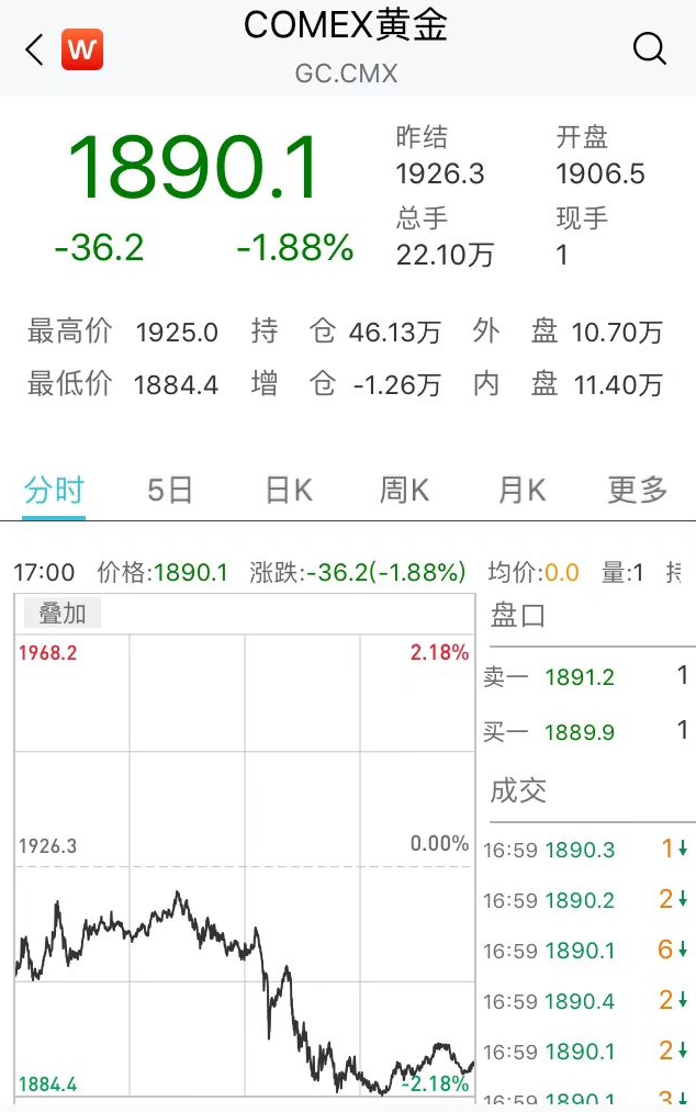避险品种走低,COMEX黄金期货跌1.88%报1890.1美元/盎司,COMEX白银期货跌1.53%报24.31美元/盎司。本周,COMEX黄金期货跌0.51%,COMEX白银期货涨1.33%。