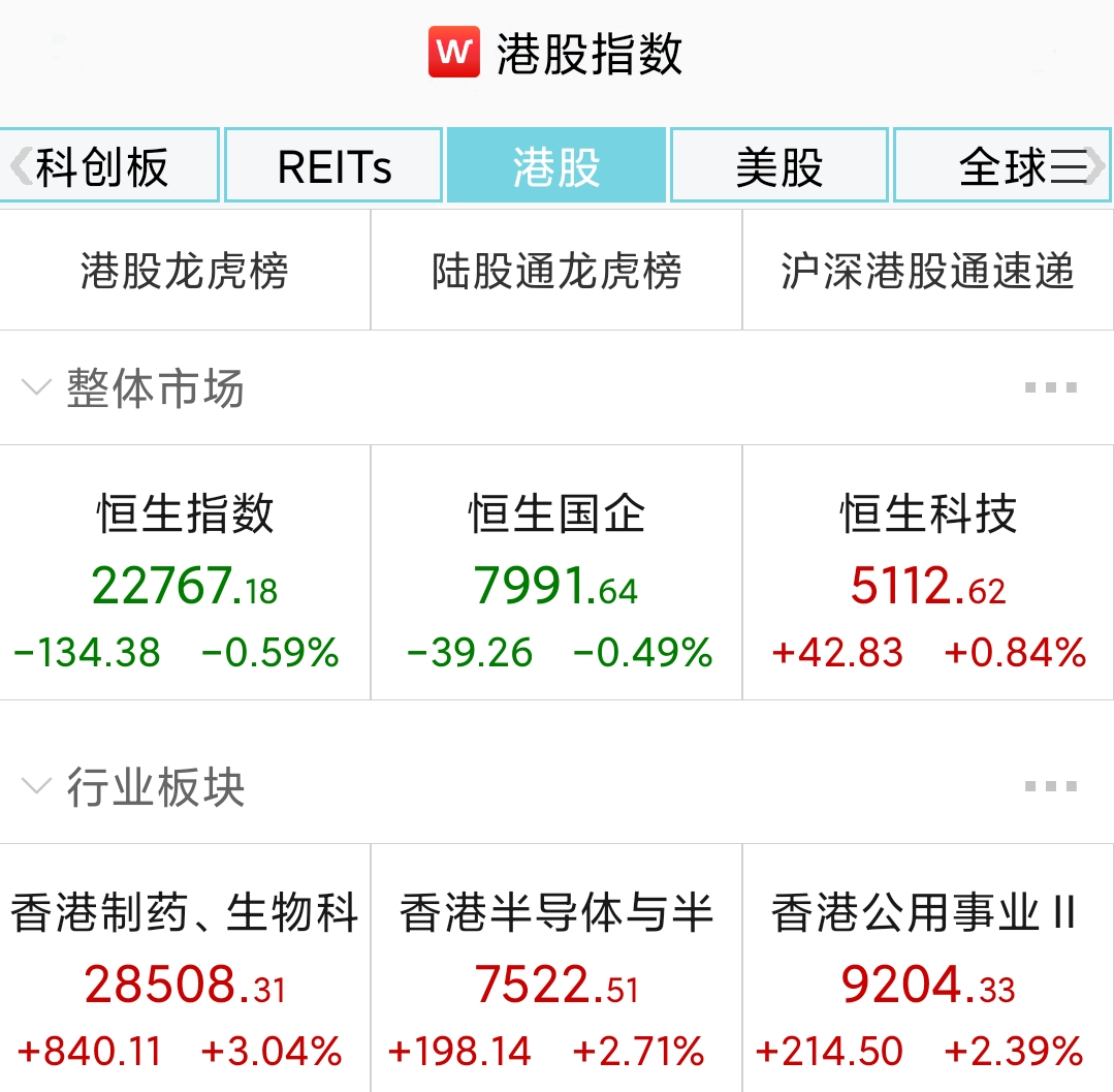 2月25日,恒生指数高开低走收跌0.59%报22767.18点,周跌6.41%;恒生国企指数跌0.49%报7991.64点,周跌6.4%;恒生科技指数涨0.84%报5112.62点,周跌6.7%。