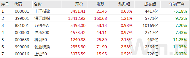截至2月25日收盘,上证指数涨0.63%报收于3451.41点;深成指涨1.21%报收于13412.92点;创业板指涨2.58%报收于2855.80点,万得全A总成交1.02亿。