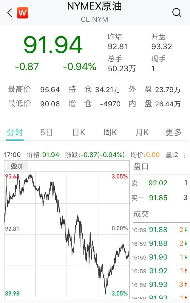 油价方面,国际油价全线下跌,美油4月合约跌0.94%,报91.94美元/桶。布油5月合约跌0.91%,报94.55美元/桶。本周,美油4月合约涨1.92%,布油5月合约涨1.08%。