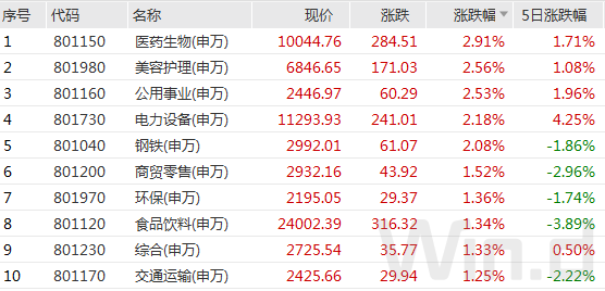2月25日,受市场避险情绪降温影响,A股全线反弹,医药生物、美容护理、公用事业、电力设备、钢铁等板块涨幅均超过2%,商贸零售、环保、食品饮料、综合等板涨幅亦超过1%。